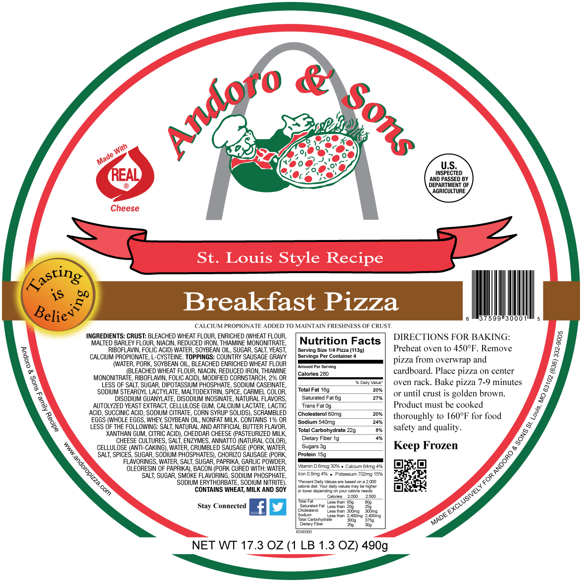 Our 12″ Breakfast Pizza is very tasted. We use ChefMate Gravy and top with crumbled sausage, chorizo sausage, bacon, scrambled eggs and sharp cheddar cheese.